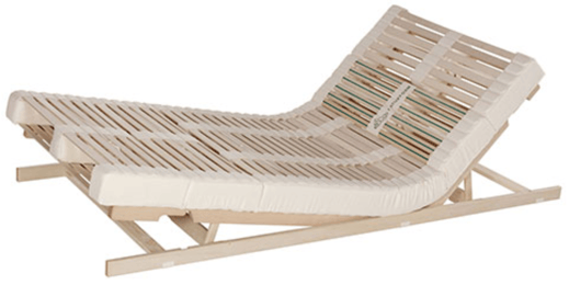 FLEXO ist ein Lattenrost bestehend aus 28 schichtverleimten Federleisten aus naturbelassenem Buchenholz. In elastischen Kautschukkappen gelagert, garantiert der Lattenrost einen erholsamen und gesunden Schlaf.